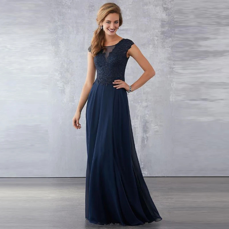 Navy Blue Mother Of The Bride Dresses A-line Cap Sleeves Appliques Beaded Plus Size Long Groom Mother Dresses Wedding Customized