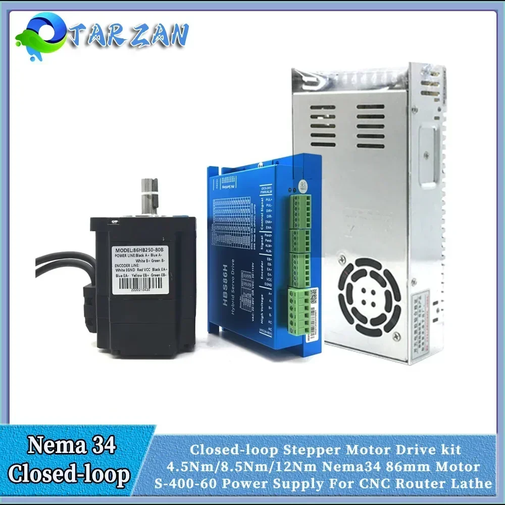 Nema34 Closed-loop Stepper Motor 4.5/8.5/12Nm 6A 2Phas Hybrid Servo Motor With Encoder Driver HBS86H 400W 60V Power Supply Kit