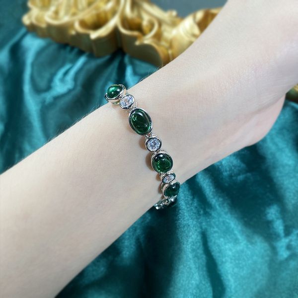 New 925 Sterling Silver Imitation Emerald 6x8mm Chalcedony Zircon Bracelet, Classic Stylish Elegant Jewelry for Daily Wear