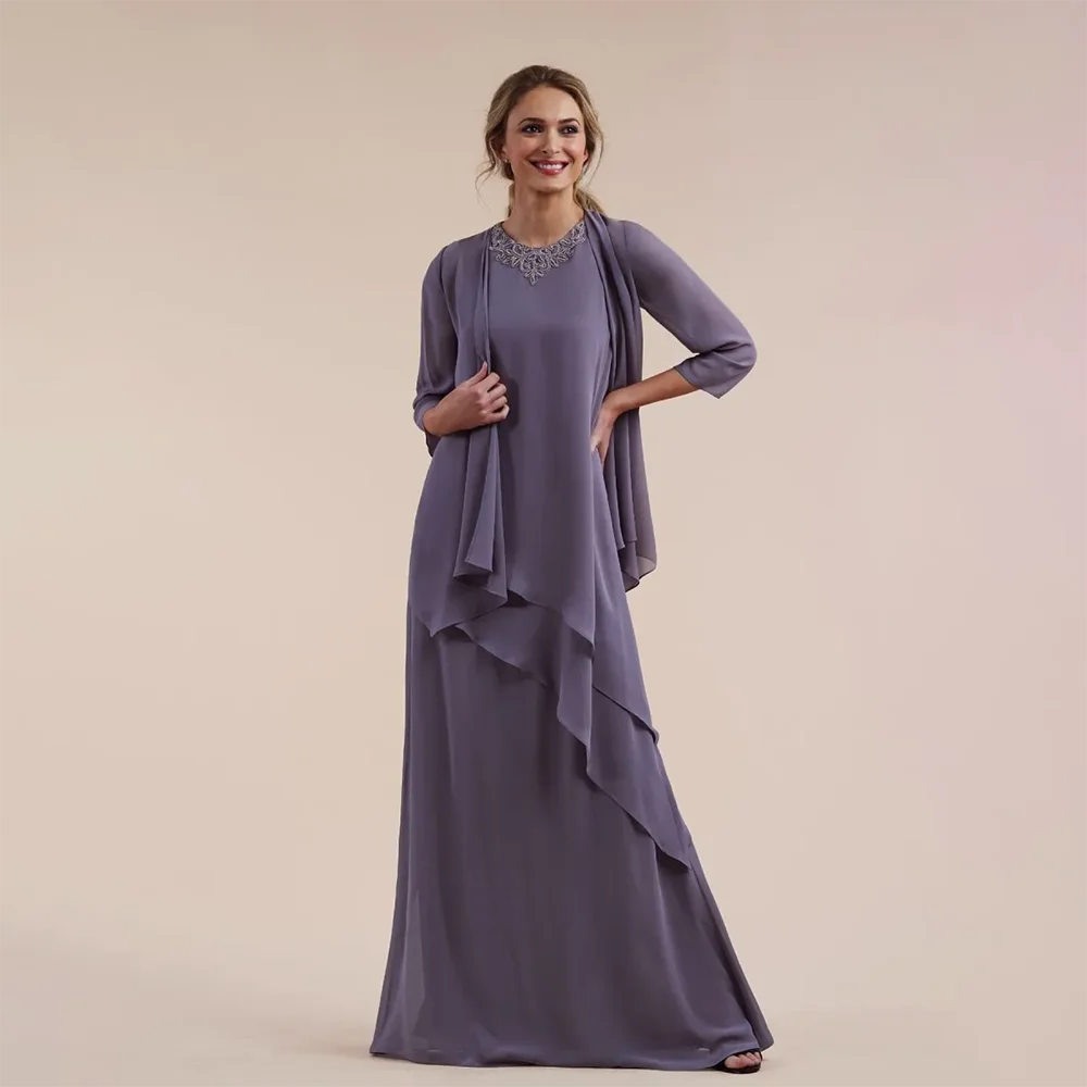 New Chiffon Mother Of The Bride Dresses with Jacket Custom Made Wedding Guest Gowns Plus Size Formal Prom wear customized