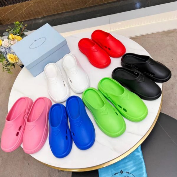 New fashion couple sandals Luxury designer slippers Flat rubber hole shoes Jelly outdoor beach anti-skid thick soled bathroom Flat toe Baotou herringbone 36-45