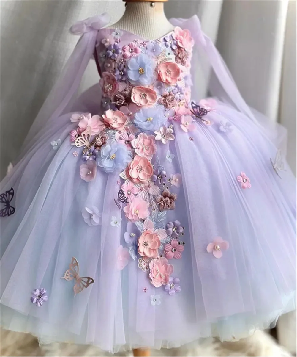 New Flower Girl Wedding Gauze Birthday Party Dress 2025 Big Bow Girl Gorgeous Graduation Evening Dress First Communion Gown