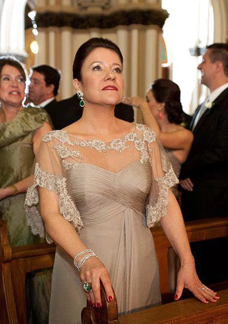 New Luxury Mother Of The Bride Dresses Cap Sleeve Long Sheer Neckline Lace Bead Banquet Mother Evening Prom Gowns Plus Size