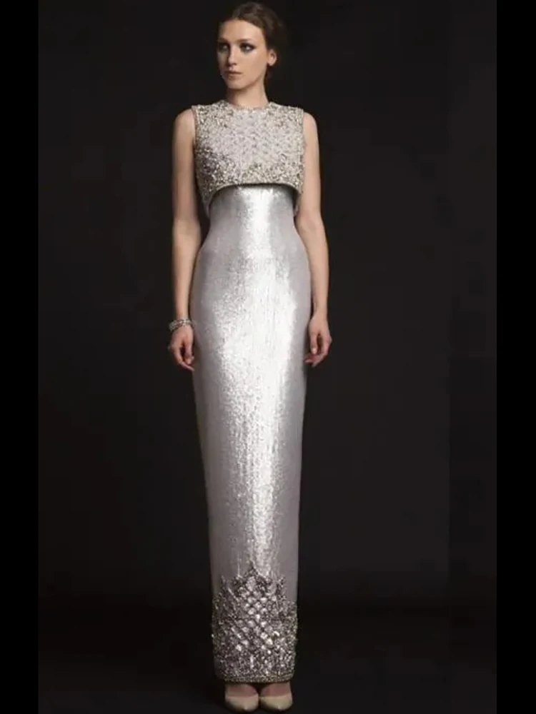 New Luxury Sequins Beading Satin Sheath Mother of the Bride Dress Special Occasion Formal Party Wedding Summer 2023