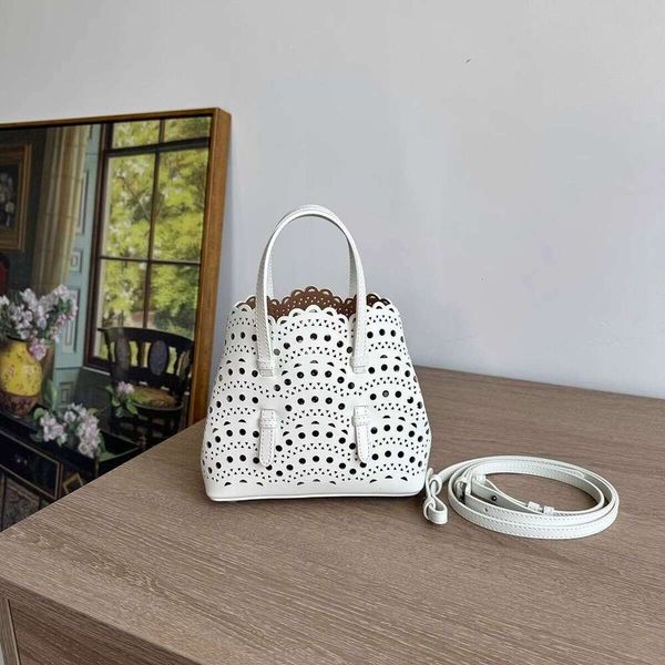 Niche carved pattern design genuine leather handbag hollowed out cowhide crossbody fashionable shoulder vegetable basket bag women's bag