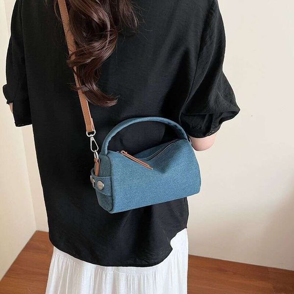 Niche Design Boston Denim Canvas for Women 2025 New Fashion Single Shoulder Crossbody Pillow Bag