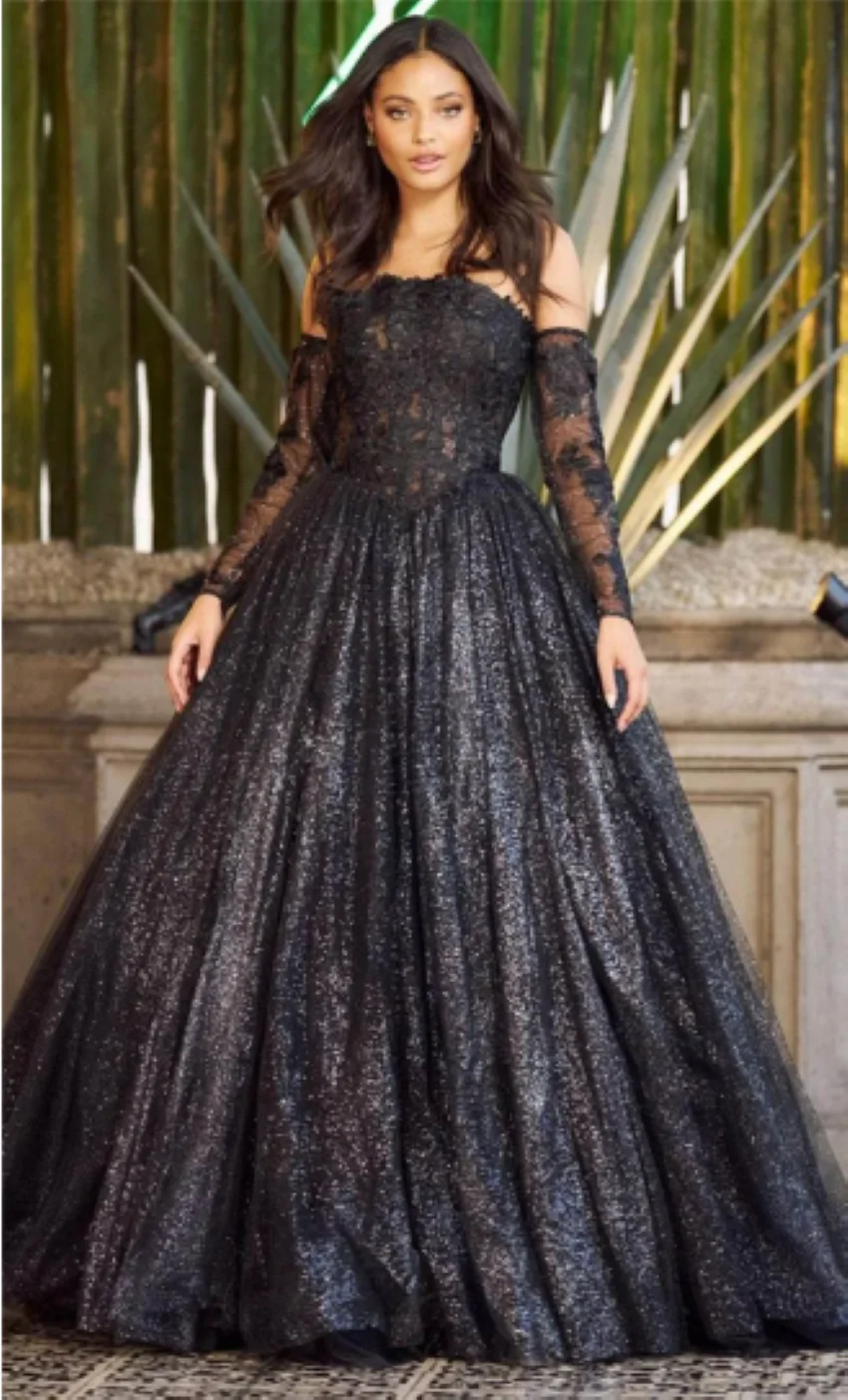 Othray Shinny Sequins Hemlines vestidos de noche Cathy Black Ball Gown Prom Dresses Lace Detachable sleeves فساتين السهرة