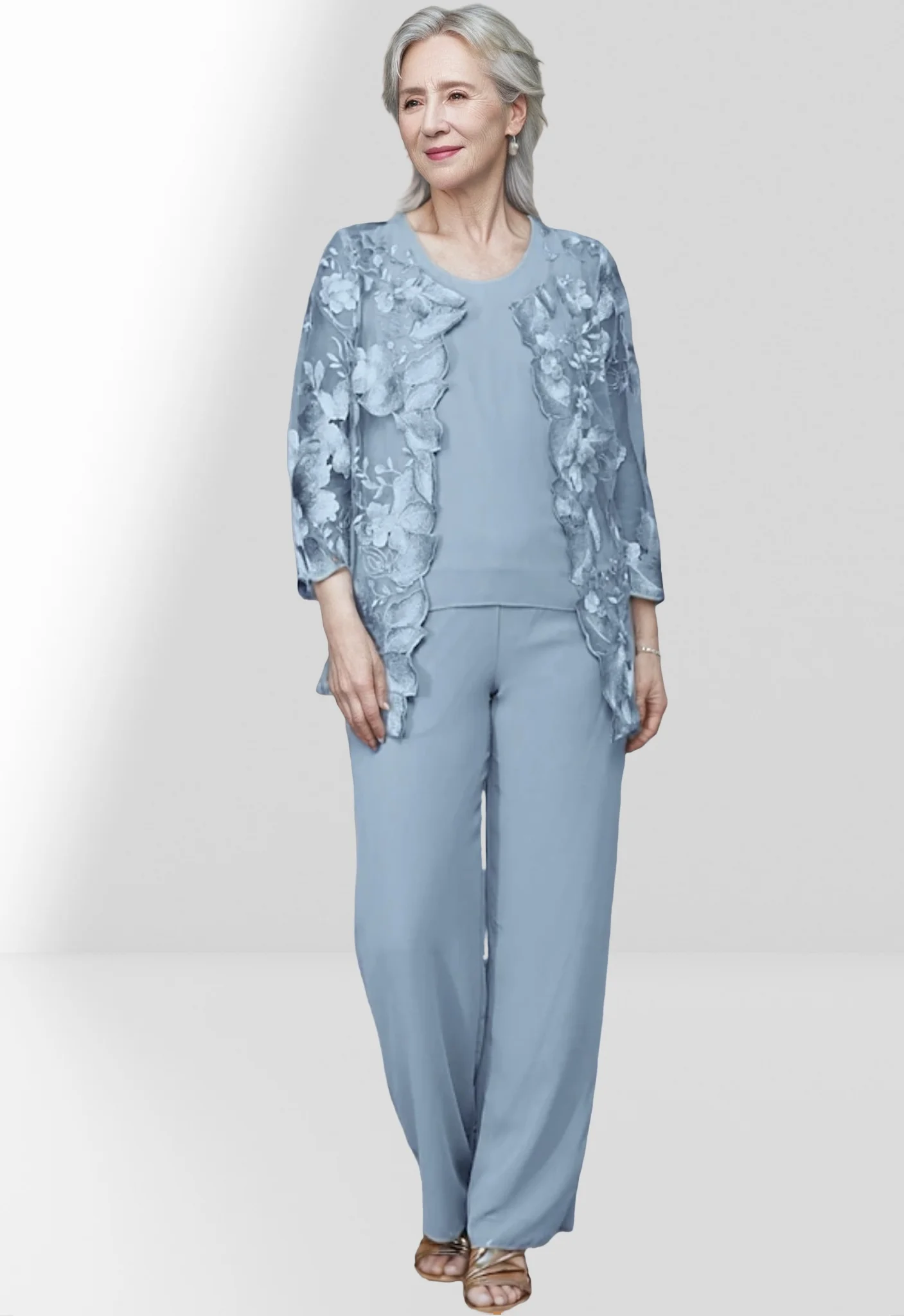 Pantsuit 3 Piece Mother of the Bride Dress Elegant Crew Neck Floor Length Long Sleeve Wrap Included with Lace 2025
