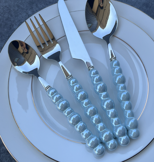 Description: Pearl Handle Knife, Fork & Spoon – A Legacy of Elegance & Precision Indulge in the timeless beauty and unparalleled craftsmanship of our Pearl Handle Knife, Fork & Spoon set. More than just cutlery, this collection is a statement of refined taste and enduring quality, meticulously designed to elevate your dining experience. Each piece is a testament to the artistry of traditional Japanese techniques, seamlessly blending luxurious materials with functional design. The heart of this set is the exquisitely crafted Pearl Handle Knife. Its polished, matte-finish handle is formed from a single piece of genuine freshwater pearl, carefully selected for its luster and resilience. The subtle shimmer of the pearl catches the light, creating a mesmerizing effect that’s both captivating and surprisingly durable. The handle’s ergonomic shape, perfectly balanced, provides a comfortable and secure grip, minimizing fatigue during extended use. The smooth, polished surface resists fingerprints and stains, maintaining the pearl’s inherent beauty for generations. This knife isn’t simply functional; it’s a visual delight, a tangible symbol of sophistication. It boasts a comfortable, slightly curved profile, designed for ease of use and effortless maneuverability. The blade is honed to a razor-sharp edge, ensuring both precision and effortless slicing, chopping, and dicing. The blade’s depth and shape are thoughtfully engineered for versatility, allowing you to effortlessly tackle a range of tasks – from delicate vegetable preparation to thicker cuts of meat. Nestled within this elegant ensemble is the Fork & Spoon set, a collection equally renowned for its beauty and utility. The fork is crafted from stainless steel, with a subtly textured finish that offers a pleasing weight and balance in the hand. The curve of the tine allows for precise and confident maneuvering, making it ideal for salads, appetizers, and a variety of culinary preparations. The spoon’s gently spiraled design is perfect for soups, stews, and desserts, offering a comfortable and secure grip. The stainless steel construction ensures longevity and resists tarnishing, maintaining the fork’s vibrant luster. The handle of the fork is made from sustainably sourced hardwood, featuring a subtle, hand-carved pattern that adds to its tactile appeal. The spoon’s bowl is generously sized, offering a comfortable and satisfying feel. The set is meticulously packaged in a luxurious presentation box, finished with a subtle pearl inlay to further enhance the overall aesthetic. It’s a gift that speaks volumes of thoughtfulness and appreciation for exceptional quality. This isn’t merely a set of tableware; it’s an investment in enduring style and a celebration of handcrafted artistry. Key Features: Genuine Pearl Handle: The heart of the set, providing unmatched luster and a subtle, captivating shimmer. Stainless Steel Forks & Spoons: Durable, hygienic, and designed for effortless use. Sustainable Sourcing: Crafted with sustainably sourced materials, reflecting our commitment to ethical production. Ergonomic Design: The carefully shaped handles offer a comfortable and secure grip, reducing fatigue during use. Elegant Presentation Box: A luxurious packaging option to showcase the beauty of the set. Exceptional Craftsmanship: Each piece is meticulously crafted with attention to detail and unwavering quality. Versatile Functionality: The combination of knives, forks, and spoons is suitable for a wide range of culinary tasks. Care Instructions: Hand wash with mild soap and warm water. Avoid abrasive cleaners. Dry thoroughly after use. Order your Pearl Handle Knife, Fork & Spoon set today and experience the timeless allure of handcrafted elegance.