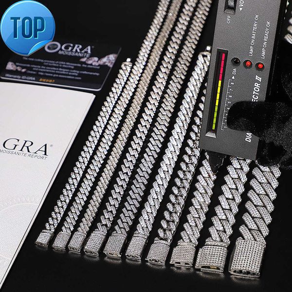 Pendant Necklaces Pass Diamond Test Hip Hop Jewelry Vvs Stone Shiny 2row 3row 4row Men 925 Sterling Silver Necklace Moissanite Cuban Link Chain