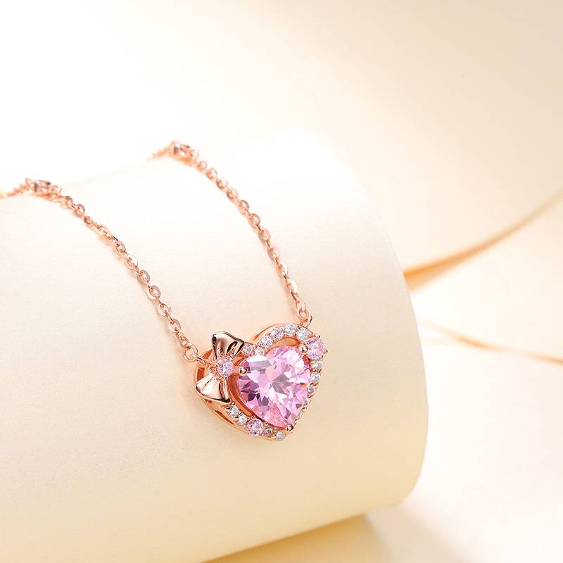 Pink heart zircon sterling silver necklace