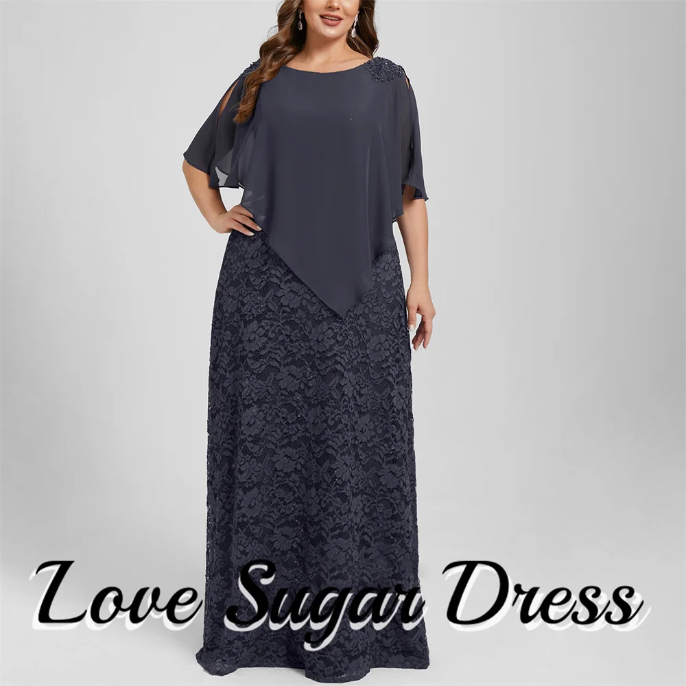 Plus Size Chiffon Mother of the Bride Dresses Scoop Lace Applique Wedding Party Gowns Long Custom vestido para madre de la novia