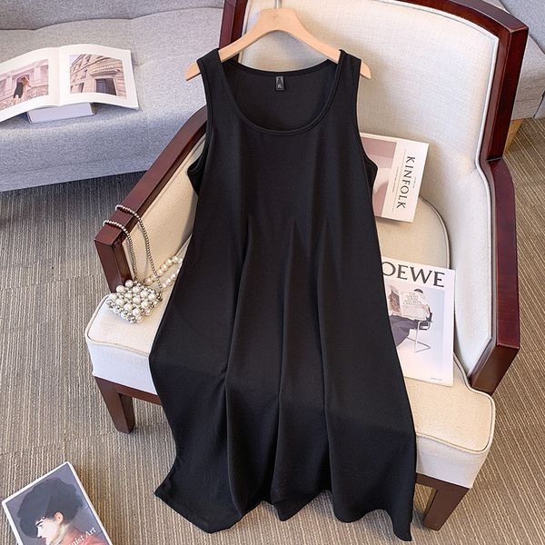 Plus size, loose vest dress for early autumn, women's outerwear with a slimming base, versatile A-line long skirt 3428