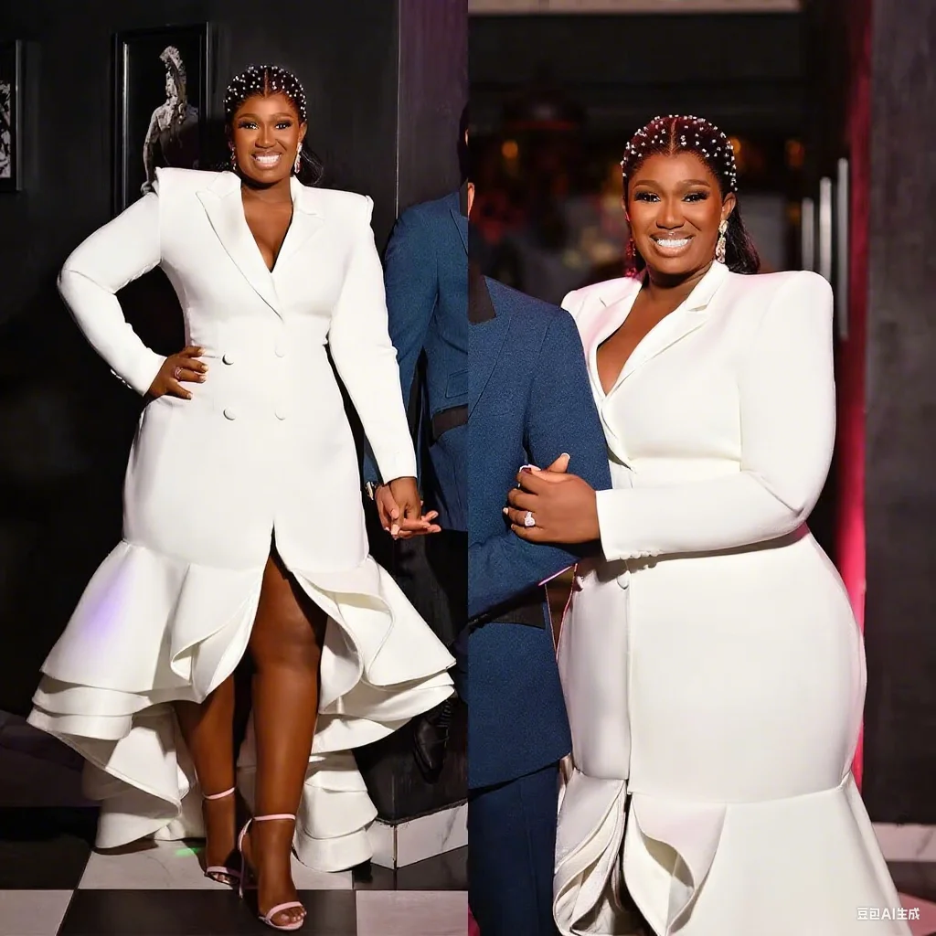 Plus Size Women Evening Dress Customized White Ruffles Blazer Female Celebrity Show Wear Prom Suits One Piece