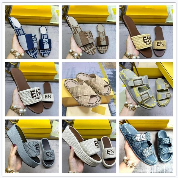 Premium Designer Denim Slippers with Embroidery Men Women's Double Button Sandals Summer Designer Shoes 26583 27649 27768