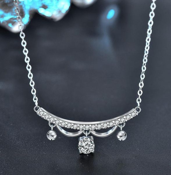 Princess Style S925 Silver Bell Pendant Necklace with Moissanite Charm for Women Gift Jewelry