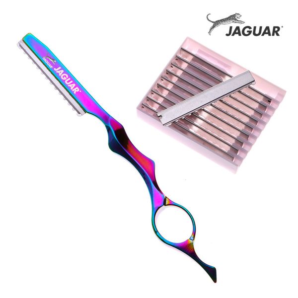 Professional Hair Styling Thinning Texturizing Cutting Feather Razor + 10 Replacement Blades Stainless Steel Rainbow Color