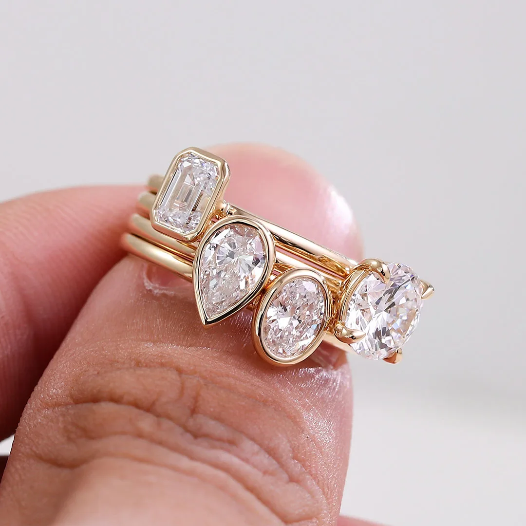 Item: Provence 14K/18K solid gold stackable rings emerald oval pear lab diamond ring set engagement wedding ring custom jewelry gift