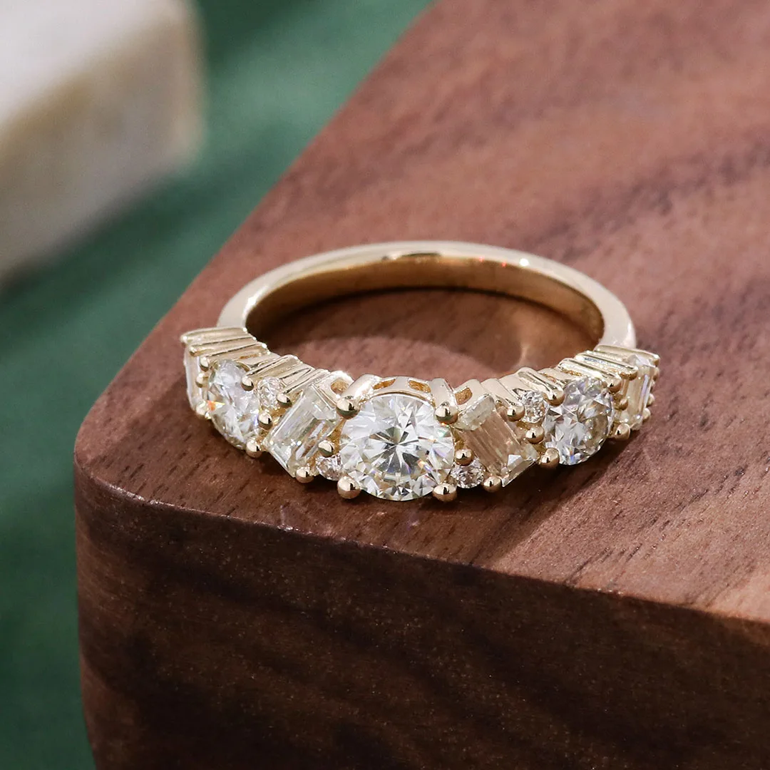 Provence 18K/14K/10K Yellow Gold 1.69ct T.W. DColor VVS1 GRA Certified Round Cut Moissanite Ring For Women With Bread Cut Stone