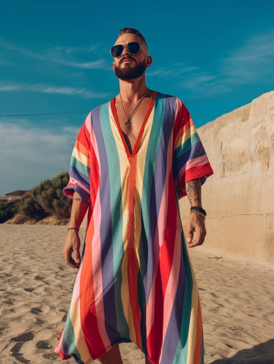Description: Rainbow V-Neck Men’s Long Caftan – Embrace Comfort and Style Indulge in the effortless elegance of our Rainbow V-Neck Men’s Long Caftan. This meticulously crafted piece is designed to elevate your look while providing unparalleled comfort and a touch of playful sophistication. More than just a garment, it’s an invitation to feel confident and effortlessly stylish, perfect for both casual weekends and slightly more formal occasions. Design & Silhouette: The caftan boasts a flattering V-neck design that elegantly contours your neckline, adding a subtle and flattering silhouette. The long, flowing lines cascade down the front, creating a visually appealing and luxurious drape. The key feature is the wide, relaxed V-neck, which offers a comfortable and stylish fit without feeling restrictive. The design is deliberately relaxed, avoiding a tight, overly sculpted appearance. Fabric & Construction: We’ve utilized a premium blend of soft, breathable rayon and cotton. This combination creates a lightweight yet incredibly comfortable fabric that drapes beautifully. The rayon provides a luxurious feel and enhances the caftan’s drape, while the cotton ensures optimal comfort and prevents excessive wrinkling. The construction incorporates a reinforced hemline and strategically placed seams to ensure durability and a seamless, polished look. The fabric is carefully selected for its luxurious texture and vibrant, subtle rainbow hues – inspired by a captivating rainbow – adding a touch of visual delight. Color Palette & Variations: The Rainbow Caftan comes in a stunning array of pastel shades, meticulously chosen to evoke a feeling of warmth and joy. Available in a captivating range of colors, including: Sky Blue: A calming and serene blue reminiscent of a clear summer sky. Rose Quartz: A soft and delicate pink, reminiscent of a blooming rose. Sunshine Yellow: A bright and cheerful yellow, perfect for adding a pop of vibrancy. Lavender Mist: A pale and ethereal lavender, evoking a peaceful and dreamy atmosphere. Coral Bloom: A warm and inviting coral hue, mimicking the beauty of a blossoming flower. Mint Meadow: A refreshing and revitalizing shade of green, evoking a sense of nature. We also offer a limited-edition “Celestial” variation featuring a deeper, richer shade of indigo – perfect for evenings. Comfort & Fit: The long length of the caftan is designed for maximum comfort. The wide, relaxed fit allows for easy movement and doesn’t restrict your style. The breathable fabric ensures optimal airflow, keeping you cool and comfortable even in warmer weather. The comfortable fit also offers a relaxed, effortless look. The sleeves are gently elongated to create a comfortable and relaxed silhouette. Versatility: This caftan is incredibly versatile and can be styled in countless ways. Pair it with your favorite shorts, leggings, or even jeans for a chic and casual look. Layer it over a simple t-shirt or blouse for a more polished evening ensemble. It’s perfect for both daytime outings and evening gatherings. Care Instructions: To maintain the beauty of your Rainbow Caftan, we recommend hand washing or machine washing on a gentle cycle. Tumble dry on low or hang to dry. Avoid using harsh detergents or bleach. Carefully Crafted for You: We stand behind the quality of our products and meticulously craft each caftan with attention to detail. We believe in providing you with a piece you’ll cherish for years to come. Elevate your wardrobe with the Rainbow V-Neck Men’s Long Caftan – experience the joy of effortless style and unparalleled comfort. Order yours today and embrace a touch of vibrant beauty into your everyday style. [Link to product page – optional]