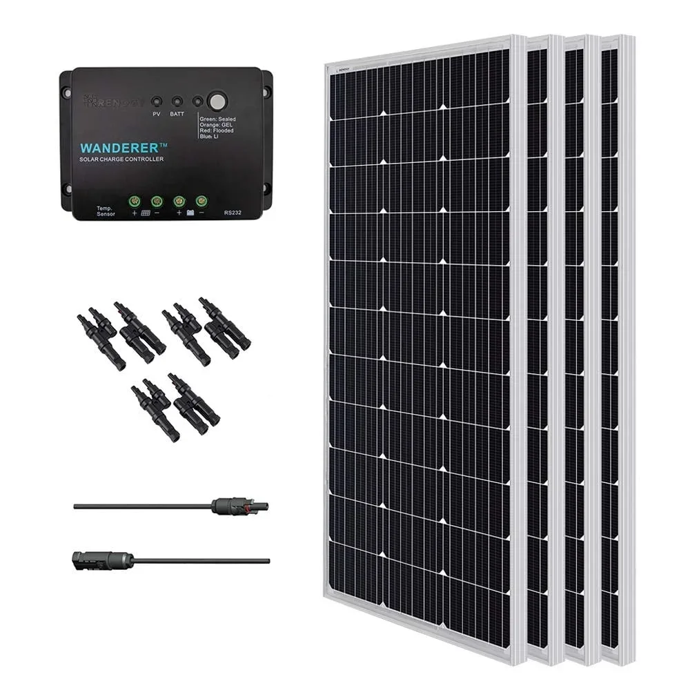 Renogy 400 Watts 12 Volts Monocrystalline Solar RV Kit Off-Grid Kit with Adventurer 30A PWM LCD Charge Controller