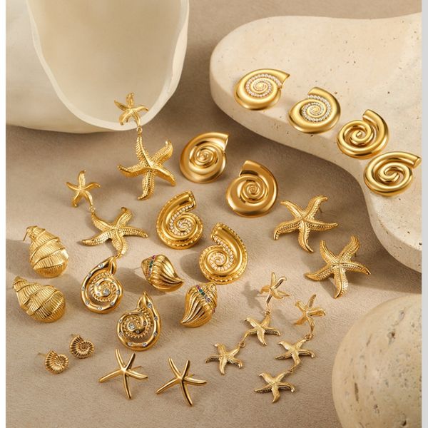 You may order Retro and elegant conch-shaped earrings echo the theme of the ocean | 18K gold plated with a swirling design, unique and exclusive, showcasing a refined taste in these locations: