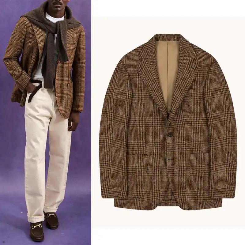 Retro Men’s Suit Single Breasted Three Buttons Plaid Woolen Blazer Prom Party Tuxedos Coat Bussiness Wedding Jacket Customized