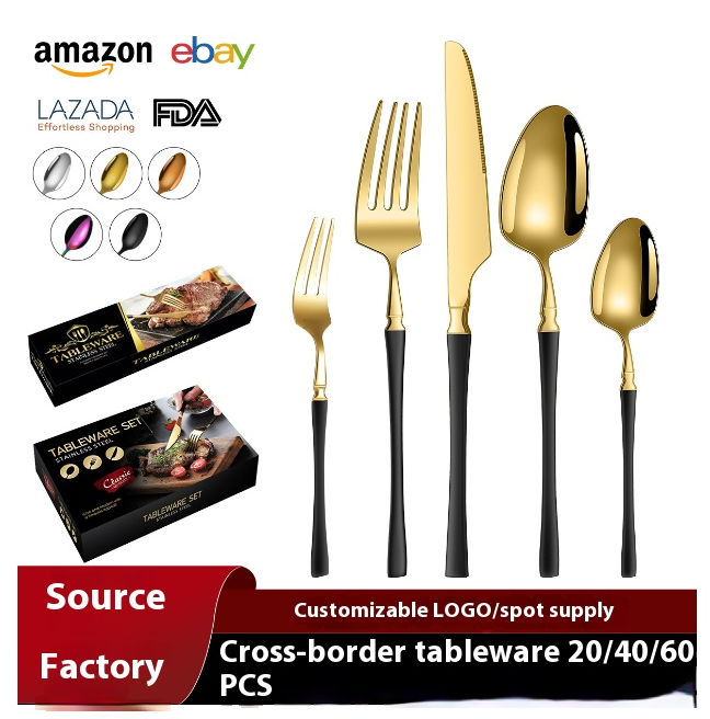 ross-border hot model small waisted four-piece stainless steel tableware 20/40/60-piece set hotel western steak knife and fork