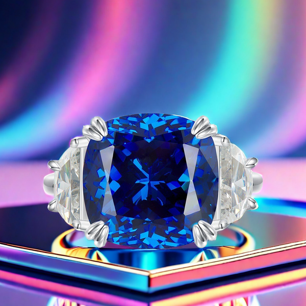 S925 sterling silver 13*13 artificial high-carbon diamond dreamy royal blue beautiful ring, European and American personalized fashion high-end royal jewelry ring