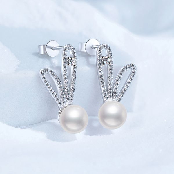 S925 Sterling Silver Earrings, Freshwater Pearl Stud Earrings, Women's Moissanite Studs, Fashion Bunny Earrings, Versatile High-End Earrings