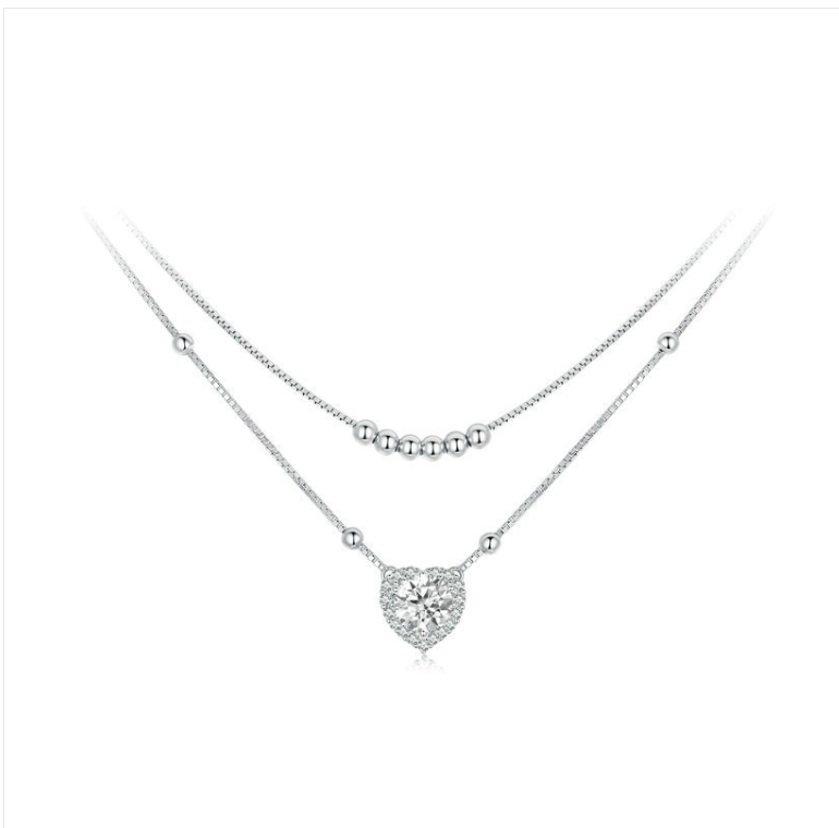 S925 sterling silver platinum-plated double-layer moissanite collarbone necklace (MSN033)