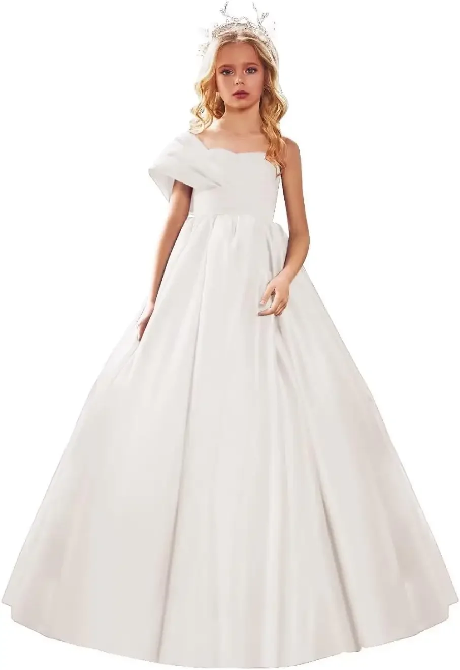 Satin One Shoulder Flower Girl Dresses for Wedding Ball Gown Puffy Pageant Gown Cute First Communion Dress princess dress