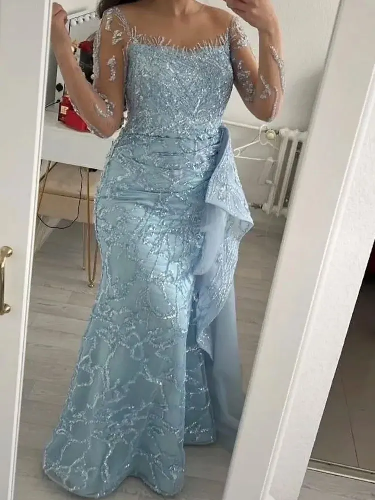 Saudi Light Mermaid The Bride Dresses Sheer Neck Evening Prom Formal Party Birthday Celebrity Mother Of Groom Gowns Dress