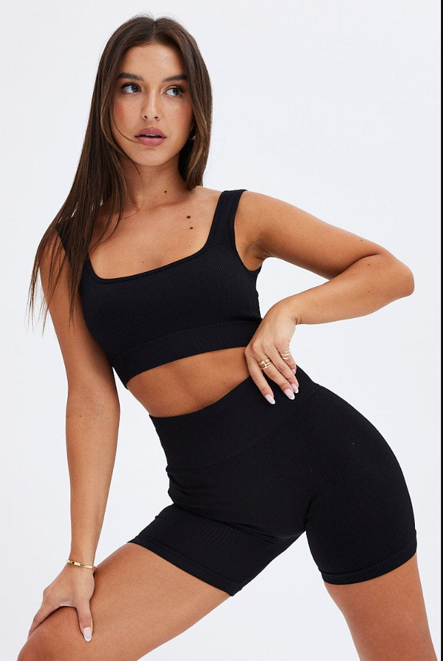 Seamless Activewear: Stylish Black Crop Tank Top for Women