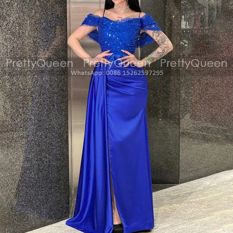Description: [SEQUINS BEADED MERMAID MAJEURE DRESSES LONG SPAGFHETTI OFF SHOULDER WAISTLINE CUP CUSTOMIZED SIDE SLIT PROM DRESSES] From SequiNs, the most beloved creator of stunning beaded mermaid mother of the brides dresses, comes this long spaghetti off shoulder waistline cap cuostoomyzized side slit prom dresses. This timeless and elegant design features a flowy silhouette with delicate lace accents that hug your curves from the waist down to the ground. The stunning beading adds a touch of sparkle, making this dress as beautiful in person as it is on camera. This dress is available in several colors, including deep blue, vibrant orange, and soft pink. Exquisitely crafted with SequiNs’ signature attention to detail, you’ll feel like a fairy princess every time you step out of this gorgeous gown. Order now and take your place on the royal throne as the belle of the ball!