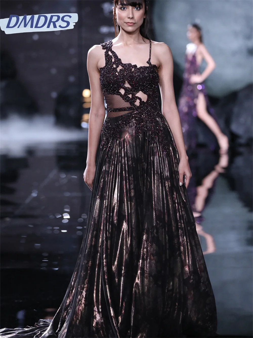 Sexy Black A-Line Evening Gown 2024 Classic Spaghetti Strap Dress Elegant Lace Appliqué Floor-length Gowns Vestidos De Novia