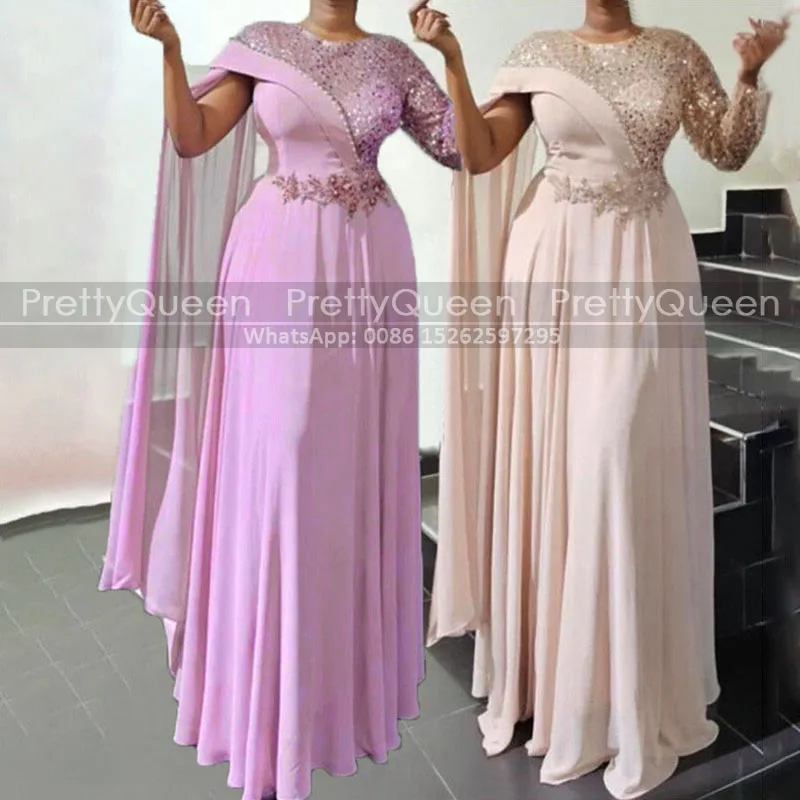 Shiny Sequins A Line Mother of the Bride Dresses Appliques Customized Single Long Sleeves Plus Size Chiffon Prom Dress Party