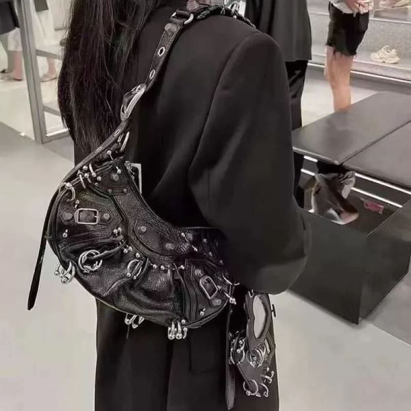 Shoulder Crossbody Women's Armpit Bag Moon Bud Bag Biker y2k Willow Studded Le Le Cagole Bag High Quality Light Luxury Half Moon Tote Diamante Black Bag