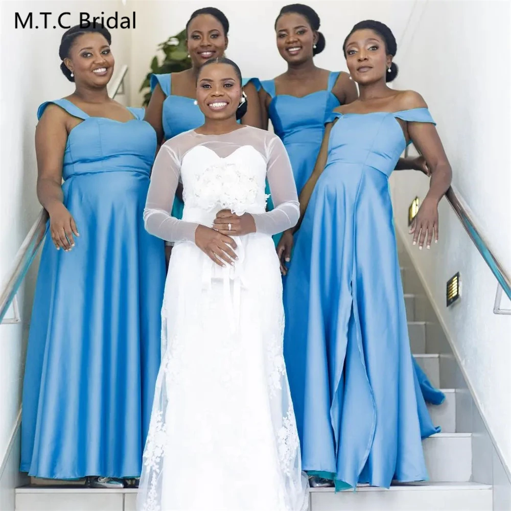 Simple 2024 Long Blue Bridesmaid Dresses A Line Spaghetti Straps Corset Back Wholesale Wedding Party Gowns Robe De Soiree