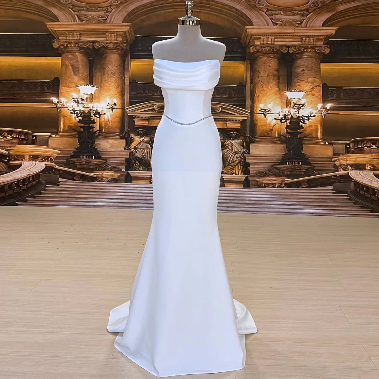Simple Evening Gown Pleated Strapless Bodice Rhinestone Waist Floor-Length Bridesmaid Dress Banquet Gown Available Customization