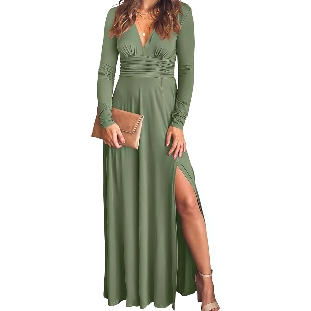 Simple Mother of the Bride Dress For Women Full Sleeve V Neck Side Split Formal Party Dress A Line Draped Bride Guest Gowns