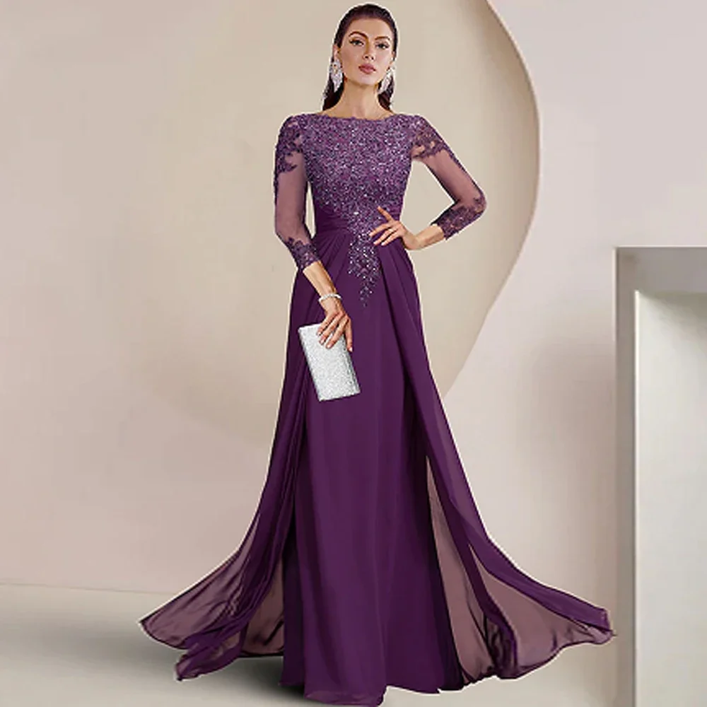 Simple Purple Mother of Bride Dresses with Chiffon Full Sleeve Chiffon Wedding Party Dresses for Women 2025 Summer Robe