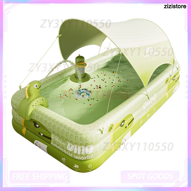 Small Dinosaur Themed Inflatable Swimming Pool for Kids – Portable Indoor/Outdoor Large Foldable Household Swimming Pool