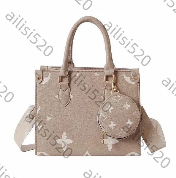Small ON THE GO shop travel Designer bag Womens mens Luxury Genuine Leather Clutch Tote Bag Cross Body embossed With shoulder straps old flo