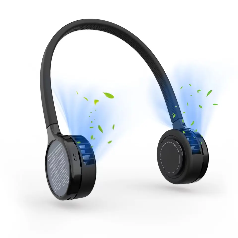 Solar neck fan folding universal adjustable portable usb office mute small fan