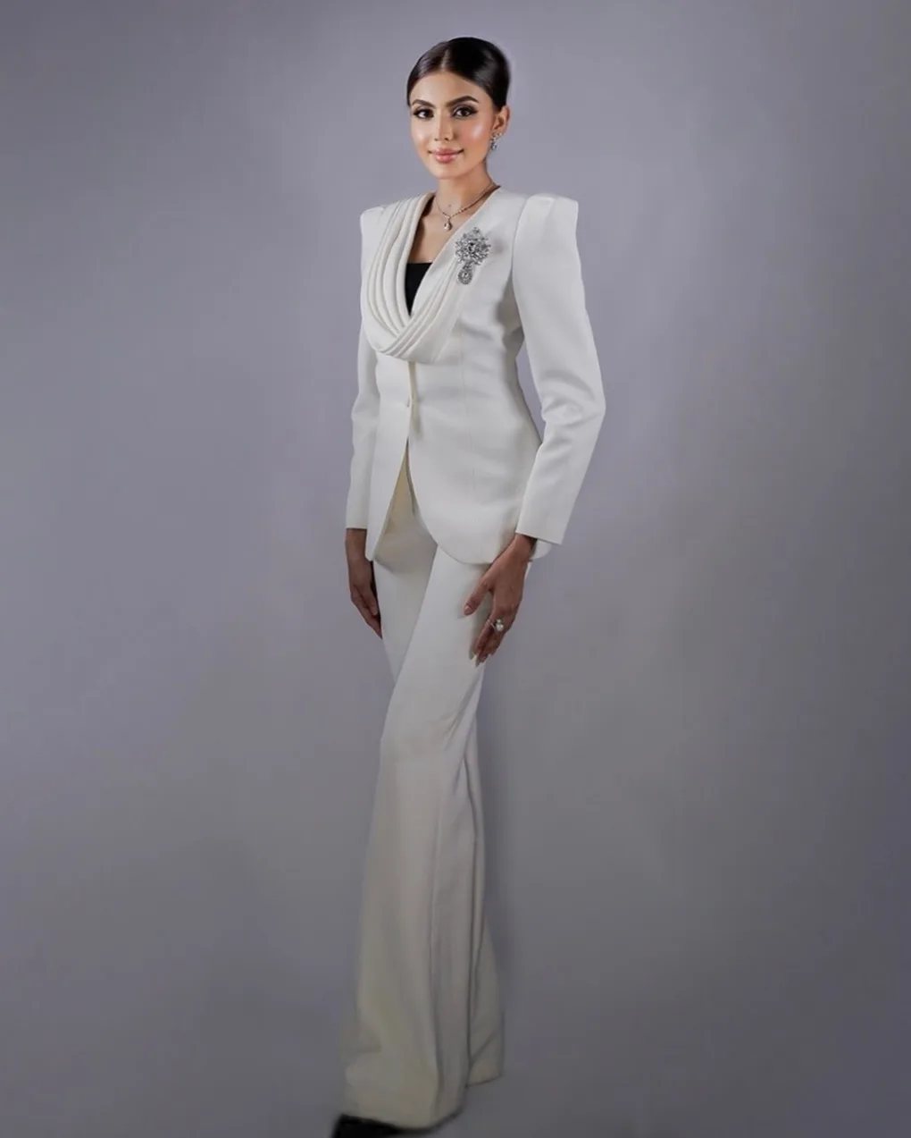 Solid Color Simple Bespok 2 Pieces Blazer Pants Women Suits Slim Fit V-Neck One Button Office Wear Women Outfits Customized