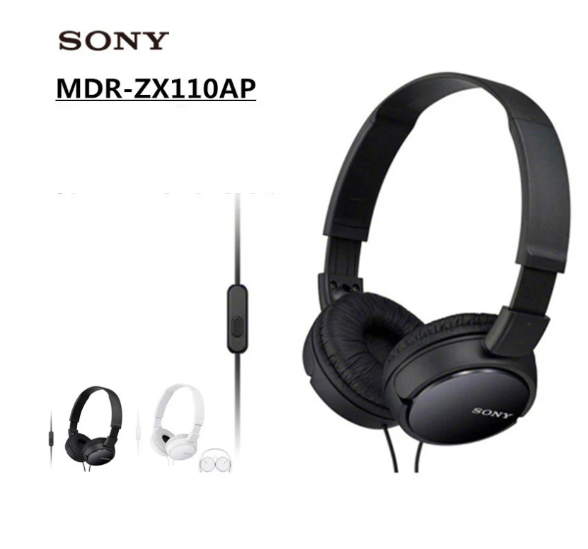Sony MDR-ZX110AP Over-Ear Headphones Subwoofer Headset Wire Universal Mobile Phone Play Music Hands Free Calls Headphones