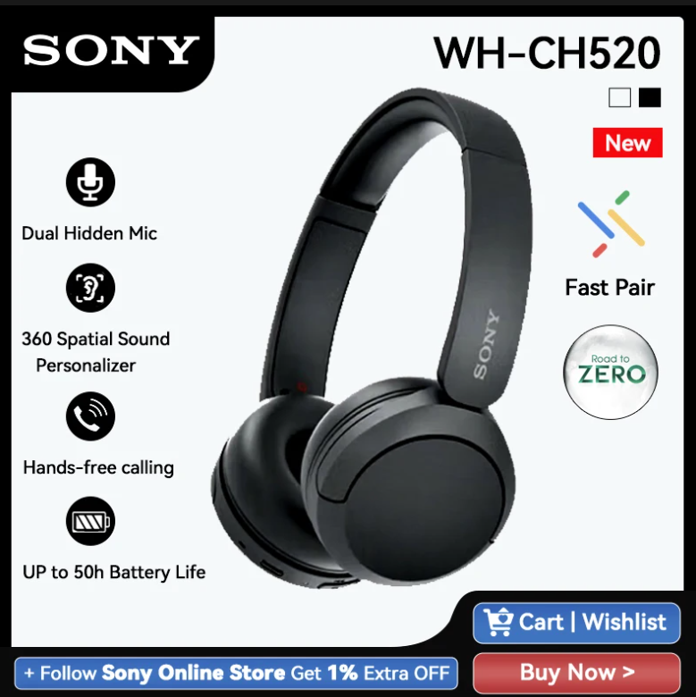 Description: Sony WH-CH520 Wireless Headphones – Immerse Yourself in Sound, Unleash Your Freedom Experience a truly exceptional audio experience with the Sony WH-CH520 Wireless Headphones, meticulously crafted for unparalleled comfort, superior sound quality, and effortless connectivity. These wireless headphones redefine your listening pleasure, seamlessly blending style and performance into a device that adapts to your life. Unrivaled Sound Quality – Hear Every Detail: At the heart of the WH-CH520 lies Sony’s Signature Audio Processor. This advanced technology meticulously analyzes and reproduces your audio, delivering a remarkably balanced and detailed soundscape. Expect crisp highs, rich mids, and a deep, resonant bass – all meticulously calibrated to provide an immersive listening experience across all genres. Whether you’re enjoying your favorite music, podcasts, or audiobooks, you’ll appreciate the clarity and accuracy of the sound. Seamless Bluetooth Connectivity – Effortless Listening: The WH-CH520 utilizes the latest Bluetooth 5.2 technology for a stable, reliable, and incredibly fast connection. Say goodbye to dropped connections and hello to uninterrupted listening. The headphones effortlessly pair with your smartphone, tablet, or laptop, providing a seamless and intuitive pairing experience. Extended Battery Life – Power Through Your Day (and Beyond): Don’t let a depleted battery interrupt your flow. The WH-CH520 boasts an impressive 50 hours of battery life with noise cancellation enabled. And when you do need a boost, a quick 10-minute charge provides an additional 3 hours of listening. This extended battery life allows for all-day use, ensuring you stay immersed in your audio world without interruption. Voice Assistant Integration – Smart and Convenient: Leveraging Sony’s powerful voice assistant, the WH-CH520 seamlessly integrates with Google Assistant and Alexa. Easily control your music, set alarms, and get information hands-free – all while enjoying your audio. Simply activate your voice assistant and start interacting with your music. Comfort and Design – Designed for All-Day Wear: The WH-CH520’s plush earcups are crafted with a comfortable, ergonomic design, meticulously padded for extended listening sessions. The lightweight build ensures a comfortable fit, minimizing pressure and maximizing wearability. The adjustable headband provides a secure and personalized fit, while the breathable earcups prevent overheating. Key Features & Benefits: Signature Audio Processor: Delivers exceptional sound quality with balanced and detailed audio. Bluetooth 5.2 Connectivity: Ensures a stable, fast, and reliable wireless connection. 50-Hour Battery Life: Provides extended listening enjoyment without frequent charging. Google Assistant & Alexa Integration: Seamless voice control for hands-free convenience. Exceptional Comfort: Ergonomic earcups and headband for all-day wear. Stylish Design: Modern and sophisticated aesthetics that complement your style. Noise Cancellation: Improves audio clarity by minimizing ambient noise. Order your Sony WH-CH520 Wireless Headphones today and elevate your listening experience to the next level!