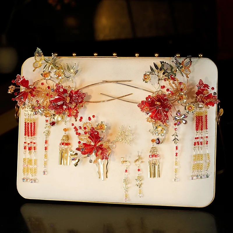 Spring and Summer Red New Style Xiuhe Headdress Simple Elegant Classical Chinese Wedding Xiuhe Suit Hair Accessories High Sense