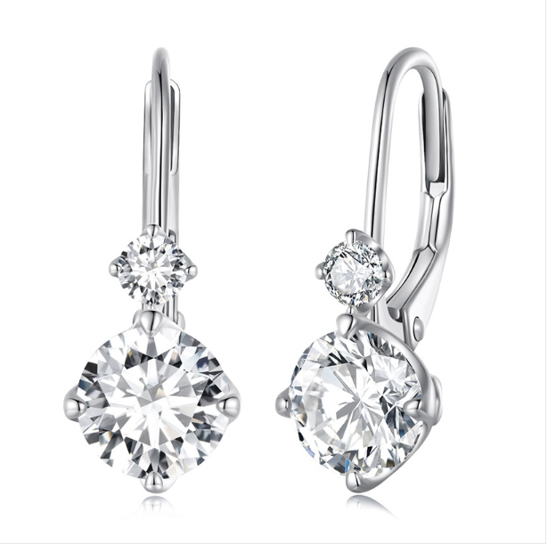 Sterling Silver 925 White Gold Plated Zircon Light Luxury Style Moissanite Earrings